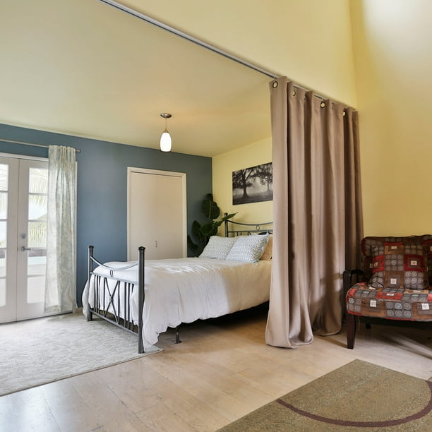 Roomdividersnow Ceiling Track Set Medium For Spaces 6ft 12ft Wide Silver Walmart Com Walmart Com from i5.walmartimages.com * if you need longer than 18 ft space, purchase ceiling track set separately, and. Ceiling track hooks are high quality and roll smooth through room divider snow ceiling track sets. 90 degree curved tracks are perfect for l setups (1 90 degree turn), u setups (2 90 degree turns), and o setups (4 90 degree turns). Shared bedrooms, studios, dorms, workspace, basements, storage, etc. Curved tracks come with everything needed to attach your track to a ceiling track set or room divider kit with ease. If you don't love your products. This sliding room divider can be easily installed in a studio apartment or condo between bedroom and living room spaces. $23.31 ($4.66 per item) 41.